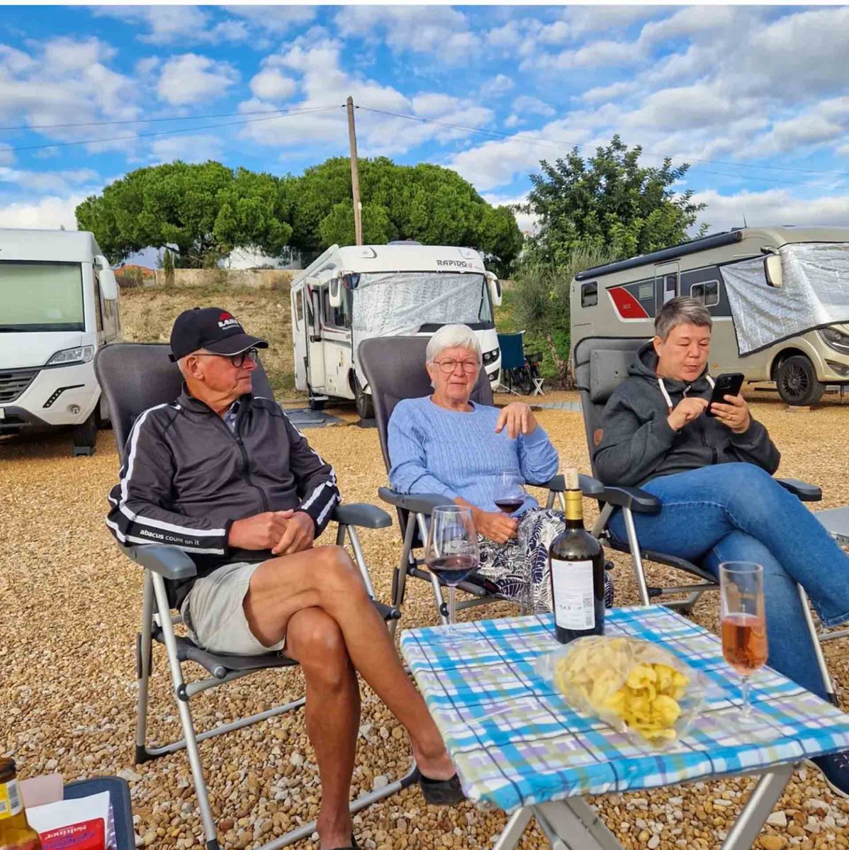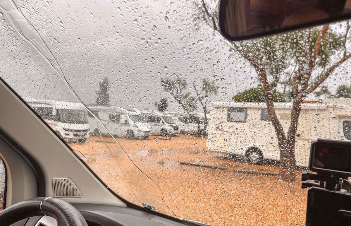 Dagen efter vi kom började molnen dra in men vi hann med ett ”Onsdagsbubbel kl 15” för de som ville innan ovädret Claudia drog in med full fart nästa dag. Det blev i princip två dagar inne i husbilen medan stormvindar ven och regnet periodvis verkligen vräkte ner.