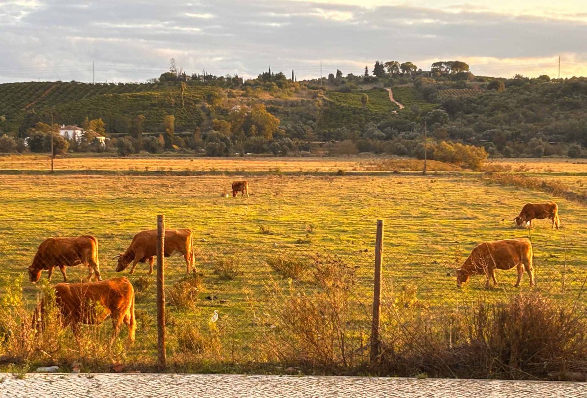 Nu har vi tillbringat en vecka på Algarve Motorhome Park i Silves. Vi kom dit hyfsat tidigt på förmiddagen och fick då en ledig plats. Annars finns det två ”vänteplatser”, som varit upptagna de flesta dagarna vi varit här. Ställplatsen har ett 50-tal platser, som är relativt väl tilltagna så det finns gott om utrymme för utemöbler och annat. Platsen vi fick var väl inte bland de bästa, eftersom vi hamnade i skugga större delen av dagen och sopbilar började köra bakom oss i en mycket tidig morgonstund. Vi ställde oss omgående i kö för en plats på den s k ”Svenskhyllan” och efter en vecka blev det en bra plats ledig där. På ”Svenskhyllan” är det för tillfället fler bilar från andra länder än från Sverige. Vi är hur som helst mycket nöjda med vår soliga plats med utsikt mot kohagen där kossorna går omgivna av silkeshägrar och till frukosten kan vi beundra ett 15-tal storkar som kliver omkring där och söker efter något ätbart.