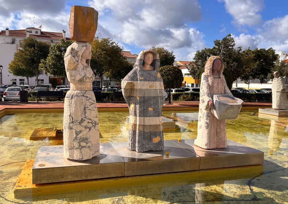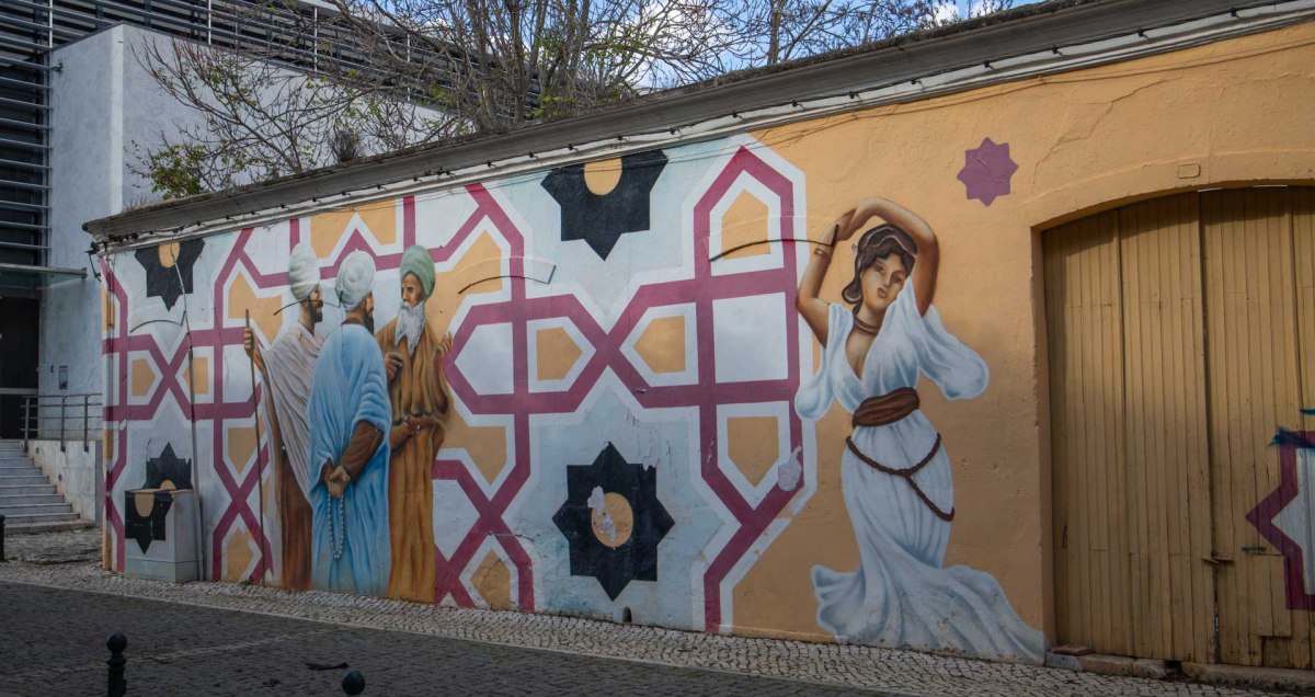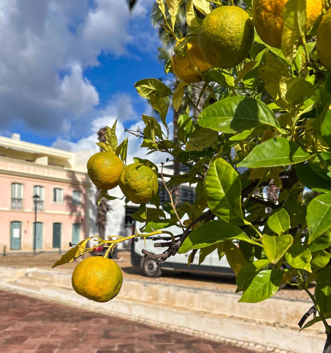 Marknaden var inte speciellt stor den här gången och det blev inga inköp för vår del innan vi tog en annan väg fram mot Gamla Stan.Vi kom till Praça Al-Mutamid där det finns en vacker vattensamling med statyer. Torget är uppkallat efter en berömd morisk poet och författare. Han levde1040-1095 och blev guvernör i Silves när han var 13 år. Han ärvde även Sevilla som kalif efter sin fars död. Runt vattnet växer citrusträd vars frukter snart mognar…, så fint!
