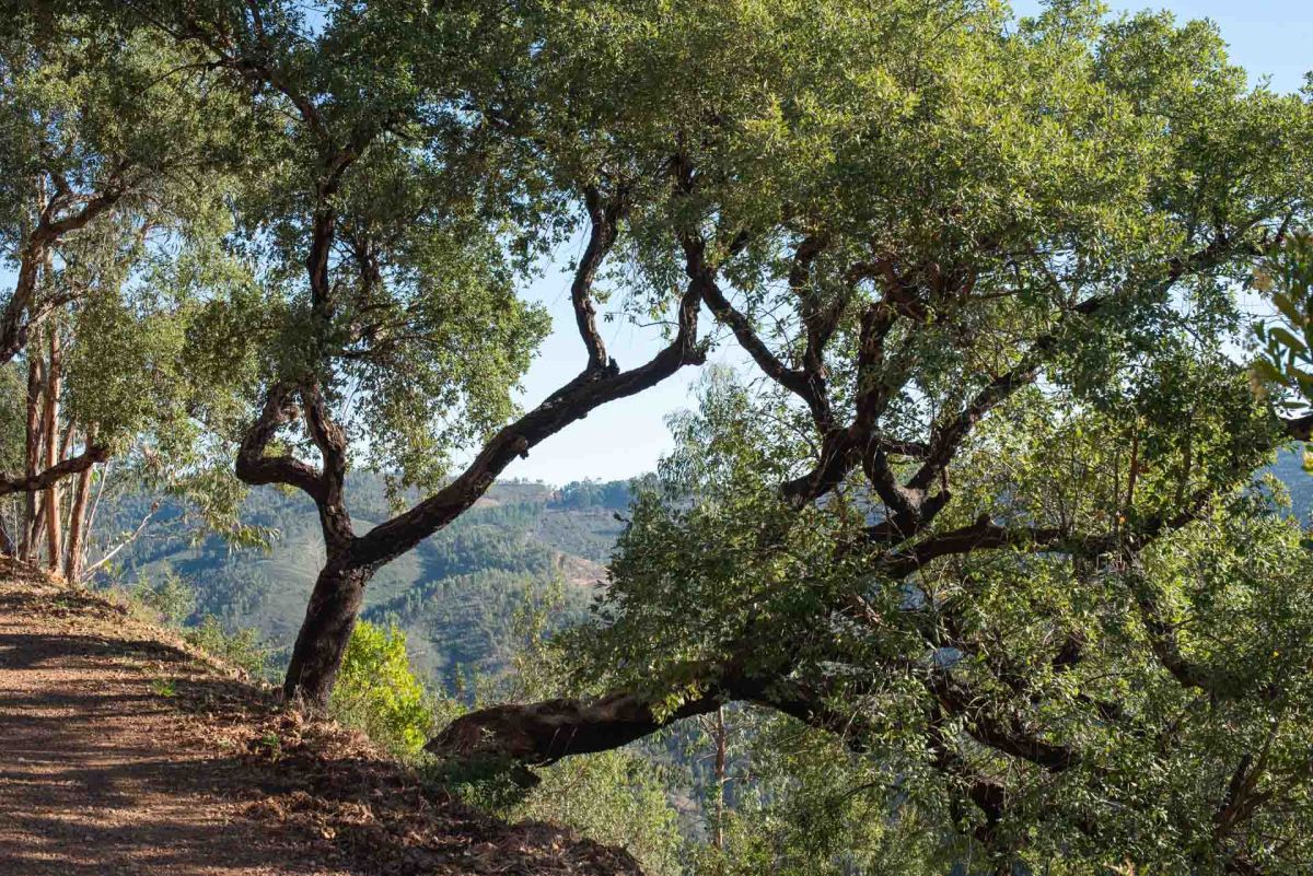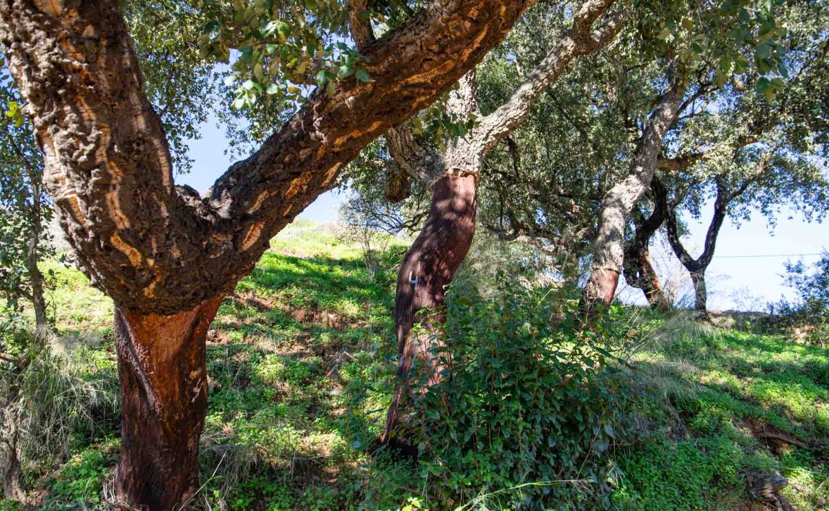 Vi passerar mäktiga korkekar, där barken skördats. Dessa märks ut med en siffra som är slutsiffran i året de skördats. Sedan dröjer det nio år innan den skördas nästa gång.