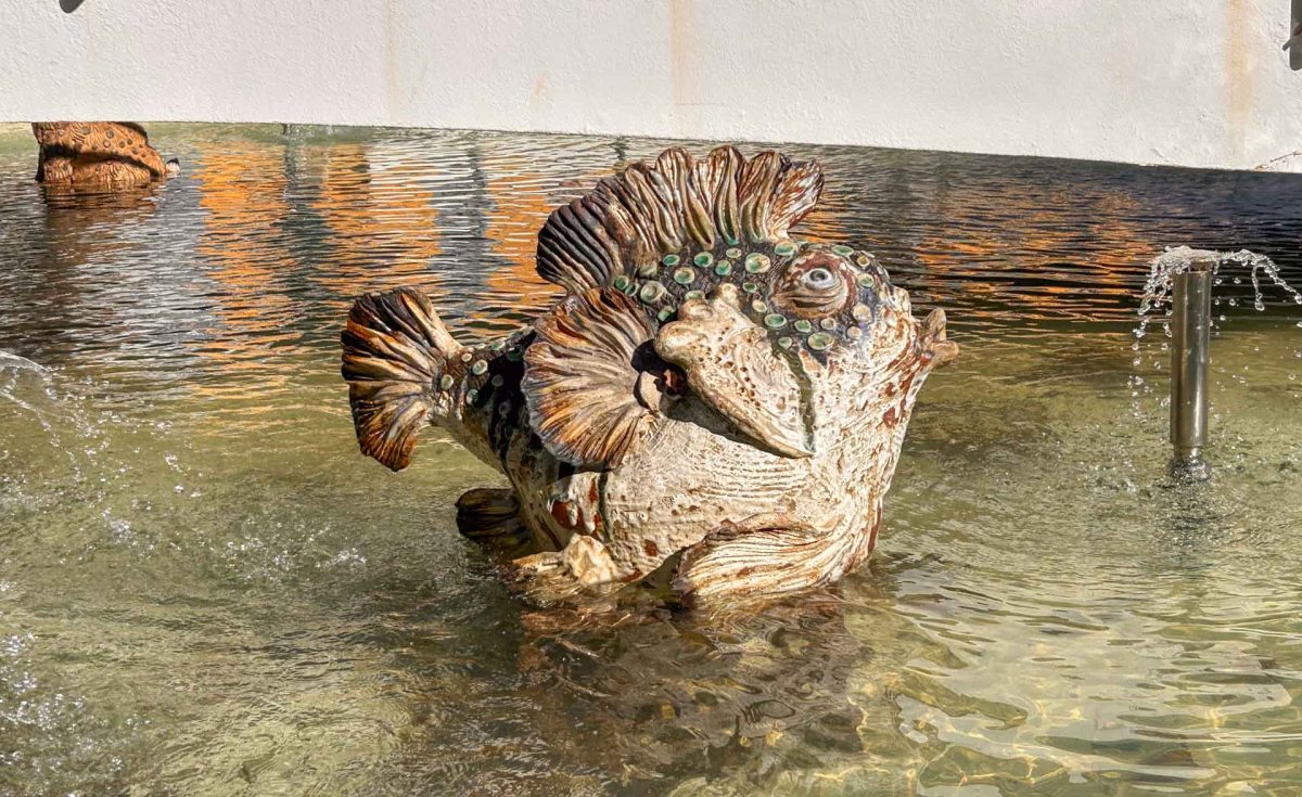 Monchique klassas som stad men med sina drygt 6000 invånare känns det som en by, eller ett litet samhälle. Monchique är känt för sina konsthantverkare, främst keramiker och det finns flera butiker med varierande utbud. Framme vid det lilla fina torget hittar vi riktigt fin vattenkonst med olika keramikfigurer från den lokala Atelje Bongard.