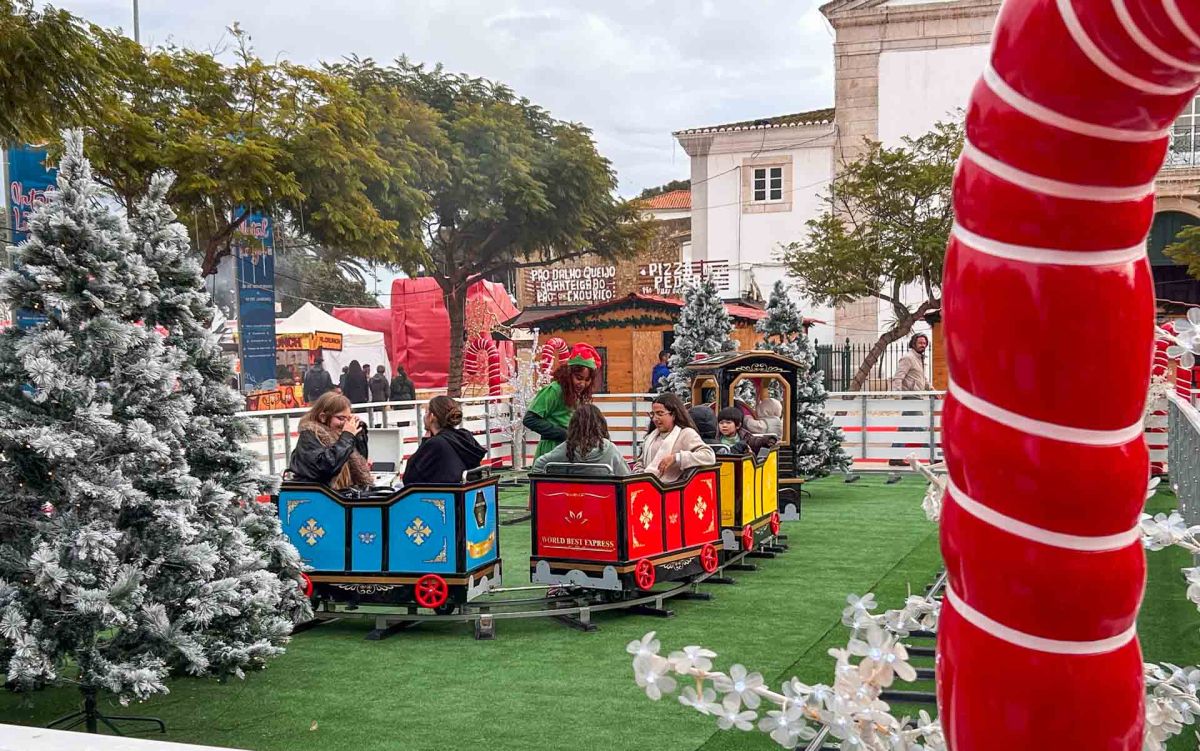På väg tillbaka till husbilen passerade vi området med julmarknad nere vid hamnen och här fanns det mängder med stånd som sålde mest ätbara saker men även en del julpynt. Det påminde nästan om en tysk julmarknad om man bortsåg från palmerna mellan bodarna. Där fanns också möjlighet att åka skridskor, något vi insåg att de flesta portugiser inte var särskilt duktiga på och ett litet tomtetåg fanns också för de minsta.