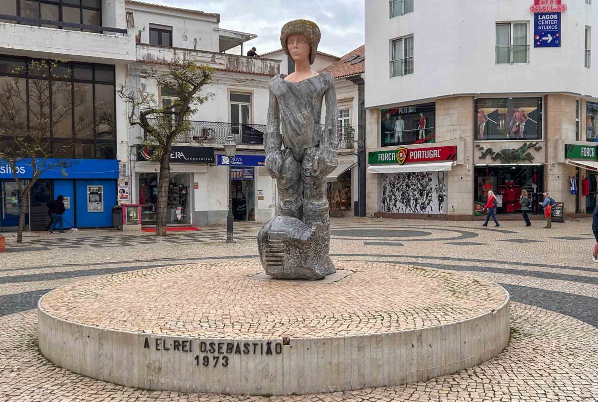 Vi gick iväg längs vattnet i staden innan vi tog av in mot Gamla stan. Där kommer vi till torget Praça Gil Eanes där en stor staty möter oss. Den föreställer Dom Sebastião, Sebastian I. Han blev kung redan som 3-åring, år 1557 och regerade sedan till sin död 1578.