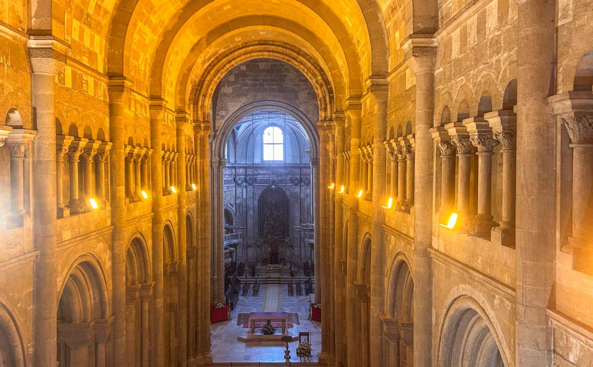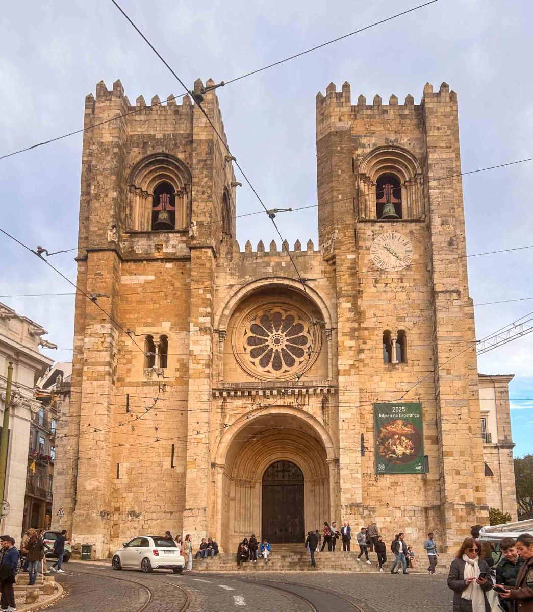 Sedan går vi ner till Sé, den stora katedralen med en lång historia. Den byggdes år 1150, tre år efter att Lissabon hade återerövrats från morerna. Den blev katedral till Lissabons förste biskop och låg på platsen där den gamla moskén hade legat. Sé är en förkortning av Sede Episcopal, vilket betyder biskopssäte. Dagens katedral, som förstördes av tre jordskalv på 1300-talet och jordbävningen 1755, kombinerar många olika stilar efter att ha renoverats under århundradenas gång. Fasaden med sina två krenelerade torn och sitt rosettfönster bibehåller sin romanska stil.