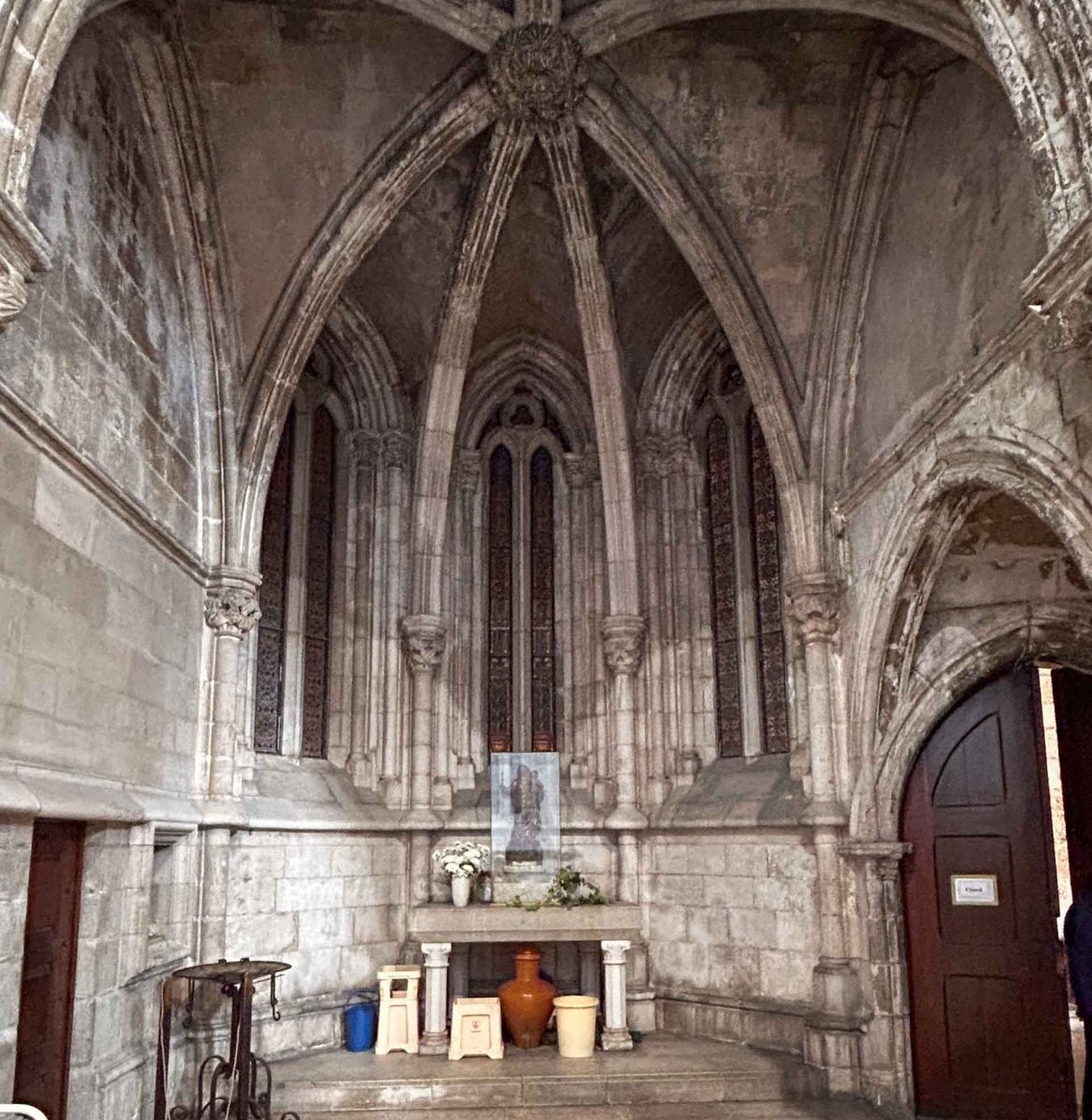 Bakom koret finns en gång som kantas av nio olika gotiska kapell, med flera olika gravvårdar och statyer.