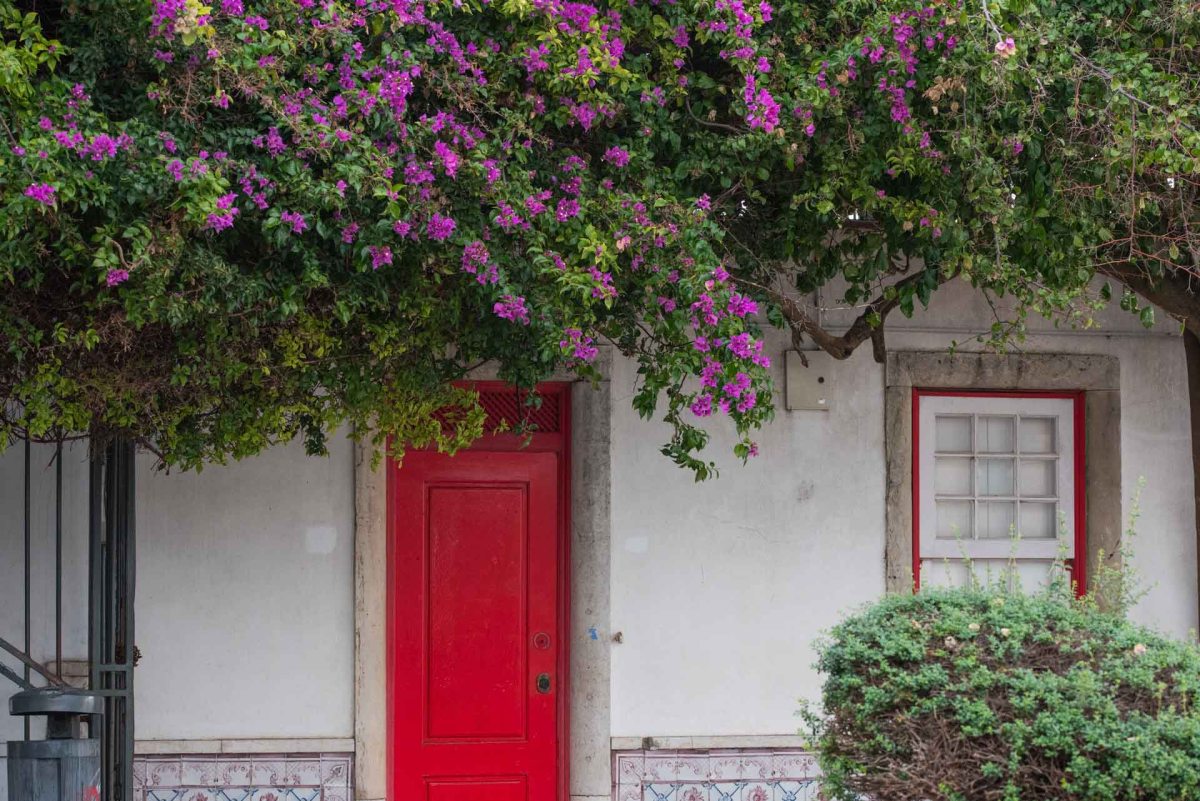 Här på altanen sitter äldre män och filosoferar med en kopp kaffe under pergolan med bougainvillea. Kyrkan är också vacker med sina blåvita azulejos på väggarna.