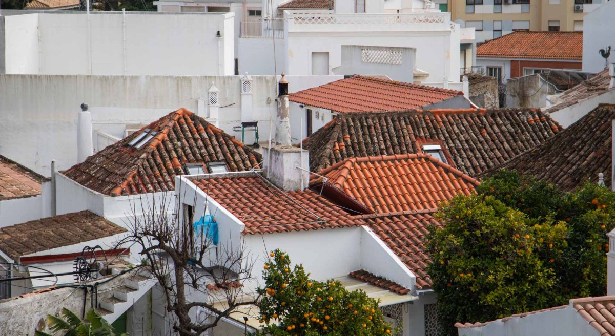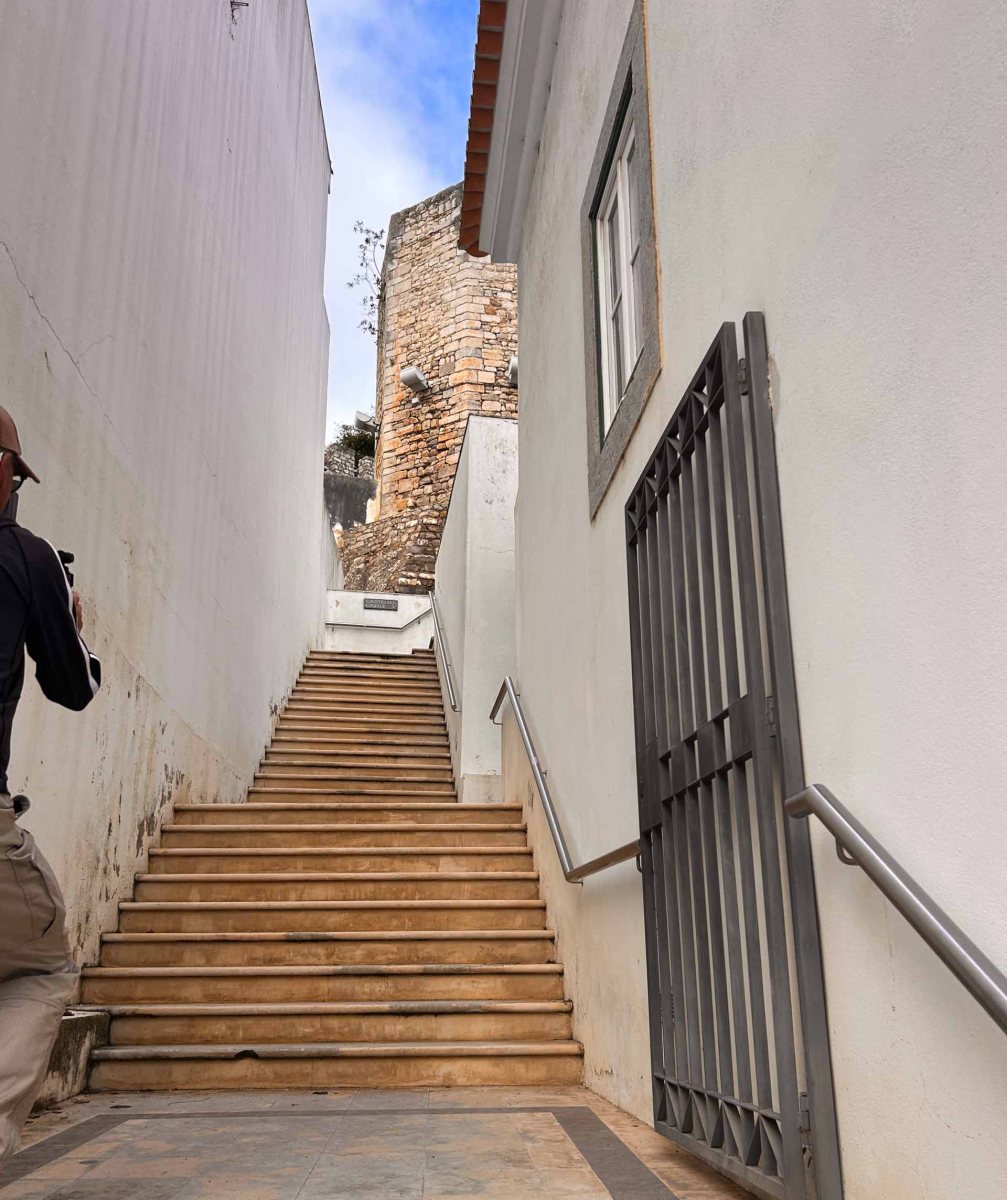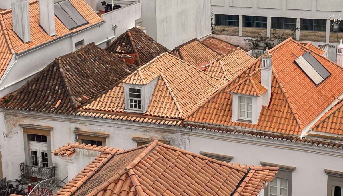 Vi går in i staden och får se en trappa upp mot ”Castelo”. Här uppe från det moriska slottet i de gamla arabiska stadsdelarna får vi en otrolig utsikt över staden. Vi fick också en perfekt vy över de typiska fyrsidiga taken som kantar genomfartsgatan, Rua de Liberdade. Man tror att de pyramidliknande taken kommit till för att regnvattnet från Algarves skyfall snabbt skulle rinna av. Självklart njöt jag som älskar tegeltak!