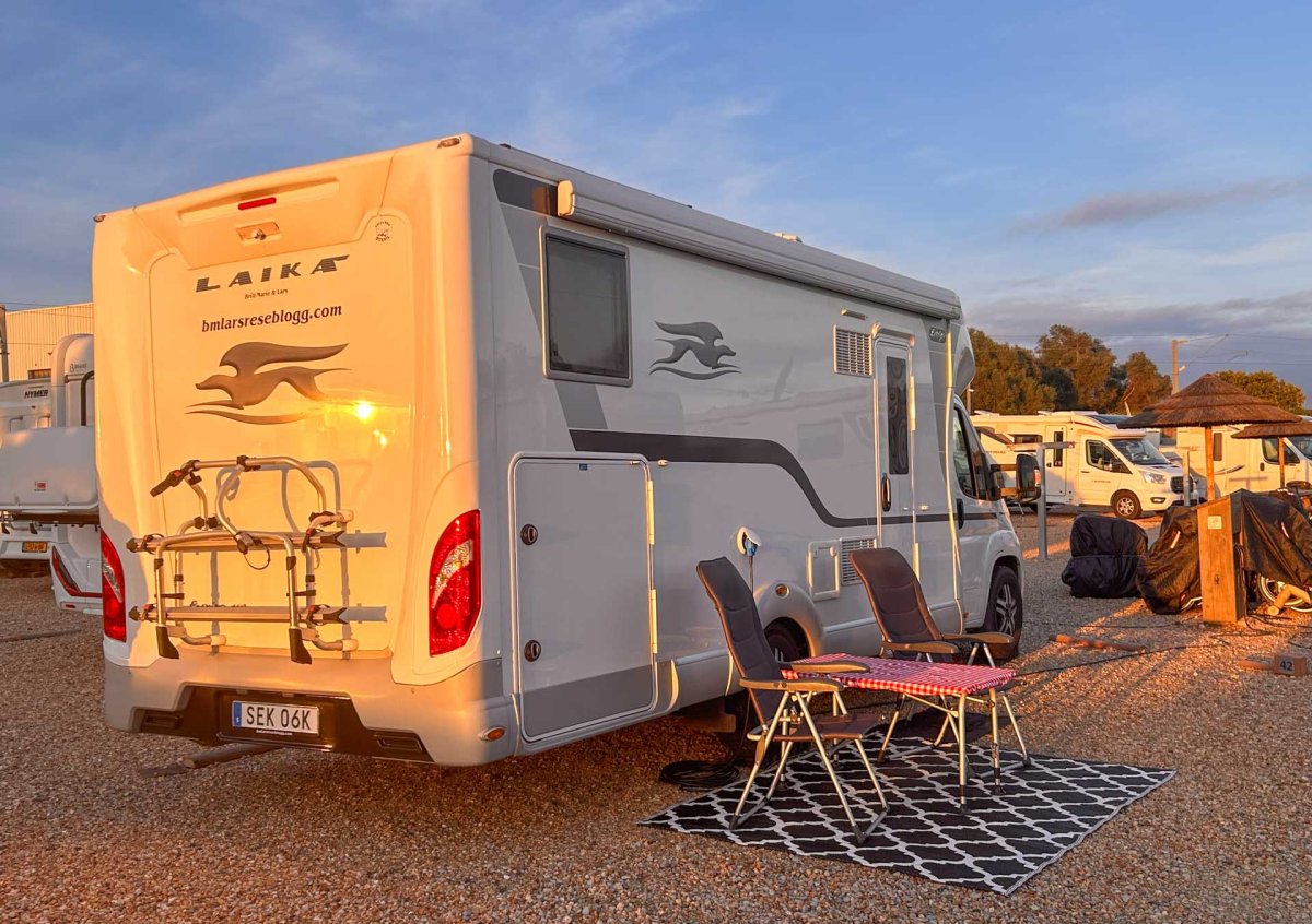 Personalen på ställplatsen i Silves kunde boka en plats åt oss på ställplatsen här i staden, eftersom de hör till samma bolag. Det var nog tur då det är få husbilar som flyttar på sig och de 120 platserna är konstant fulla. I Silves fick vi ibland kommentarer om att det var många svenskar där (drygt hälften av platserna). I så fall gäller det istället fransmän här i Tavira. Det är mängder med fransmän, men även gott om tyskar och nederländare. Totalt har vi sett fyra svenska husbilar här, Laikan inkluderad. Vi har i alla fall fått en riktigt bra plats, med sol en stor del av dagen och bra utrymme.