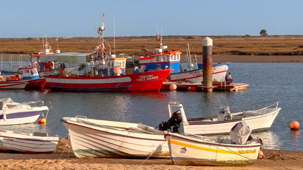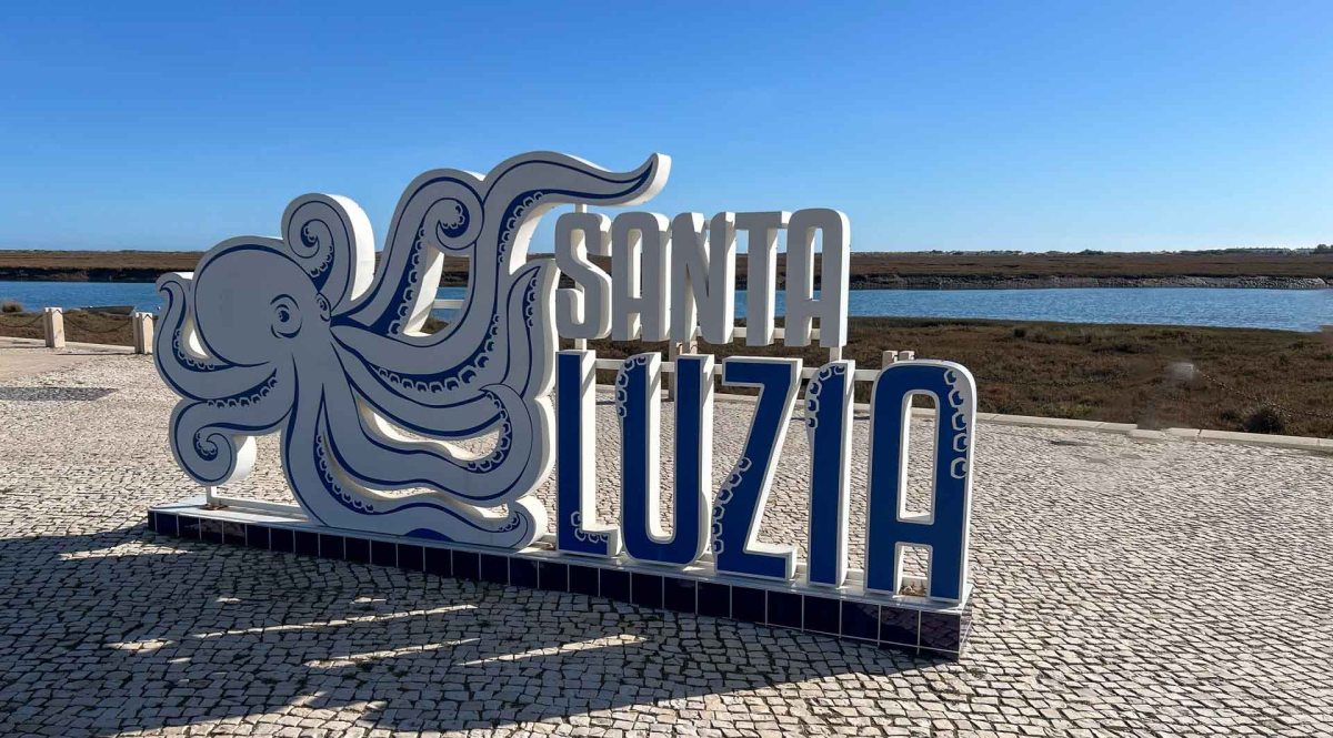 Tillbaka vid cyklarna trampade vi längs vattnet till Santa Luzia. det är en charmig liten fiskeby och det sägs att byn är ”bläckfiskens Mekka”.