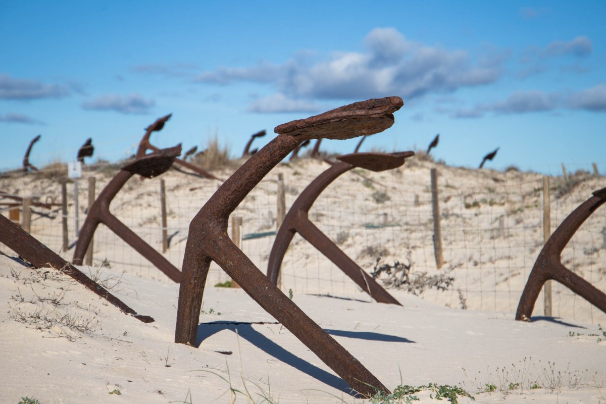 Det stora antalet ankare representerar inte fiskeflottans storlek utan det sättet på vilket man fiskade. Det innebar att de skapade en labyrint av nät som förankrades på havsbotten. I dessa fångades den blåfenade tonfisken medan mindre fiskar undkom.Vi tyckte det var både vackert och stämningsfullt att gå omkring bland de stora rostiga ankaren. Det blev många foton tagna även om vi självklart bara fick hålla oss på spångarna som omgav alla ankare.