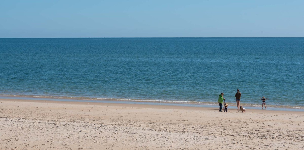 Vi fick en härlig dag och när vi kom över till öns sydsida finns det en gigantisk sandstrand. Även denna ”vinterdag” är de utställda solstolarna upptagna och uteserveringarna är fullsatta. Vi tar en promenad längs den vackra stranden, men några badare ser vi inte till. Stranden är så lång att när vi ser ut mot horisonten ser vi att jorden verkligen är rund när horisonten kröker sig…