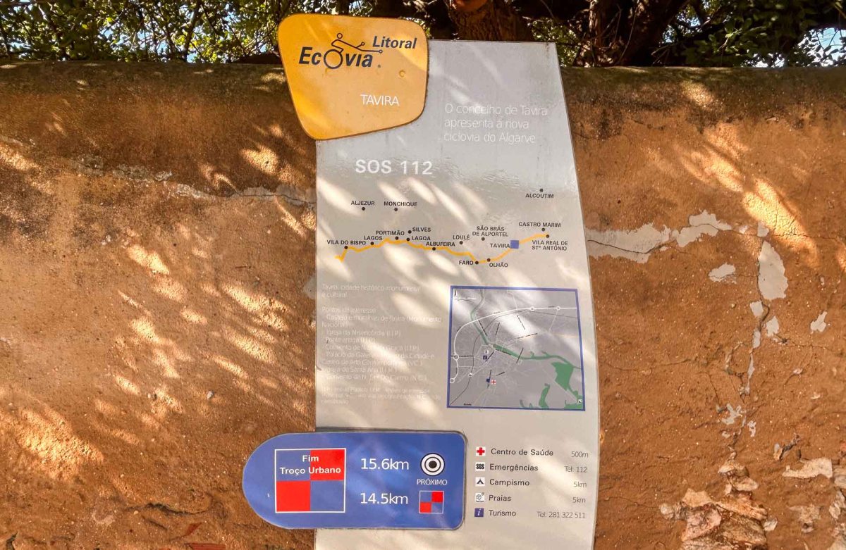 Här i Tavira finns det helt andra möjligheter att använda våra cyklar mot när vi var i Silves. längs hela Algarves kust går en lång cykelled, Ecovia do Litoral. Således går den även genom Tavira och den här dagen tänker vi åka förbi den lilla fiskebyn Santa Luzia till Pedras D´el Rei.