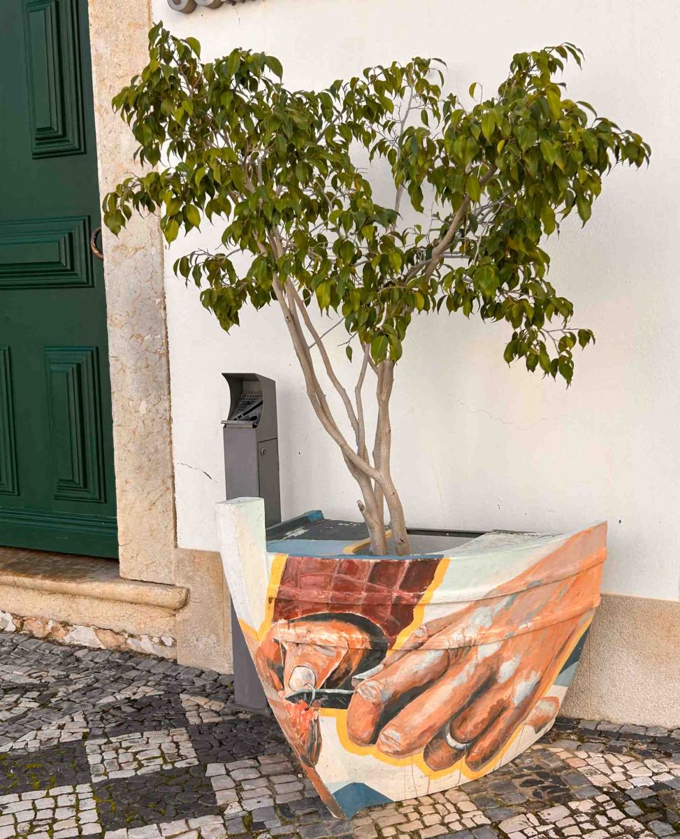 Längs de trånga gatorna finns det mängder med fint målade ”blomkrukor” formade som fören på en båt.