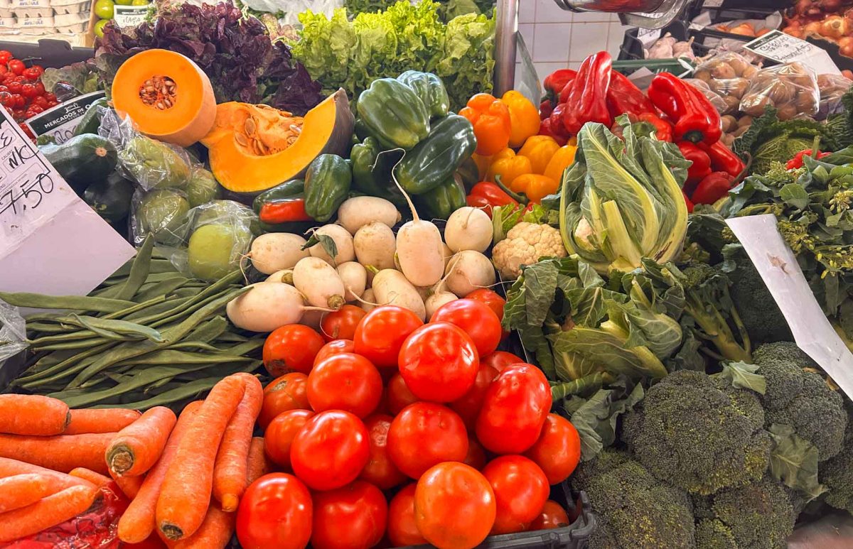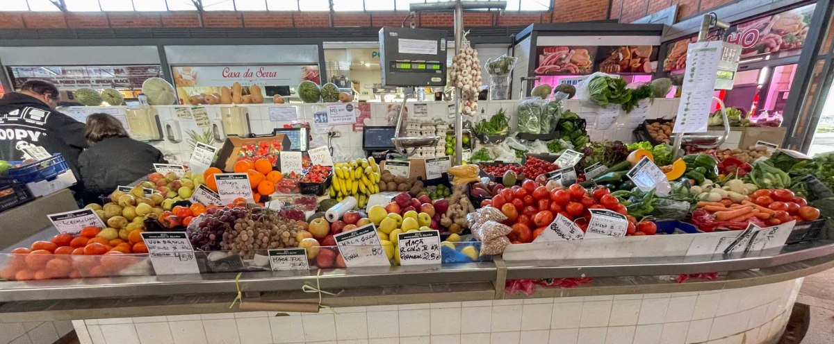 I den andra byggnaden finns en färskvarumarknad, och de olika stånden säljer lokalt odlade frukter och grönsaker, blommor, bröd och regionalt hantverk.