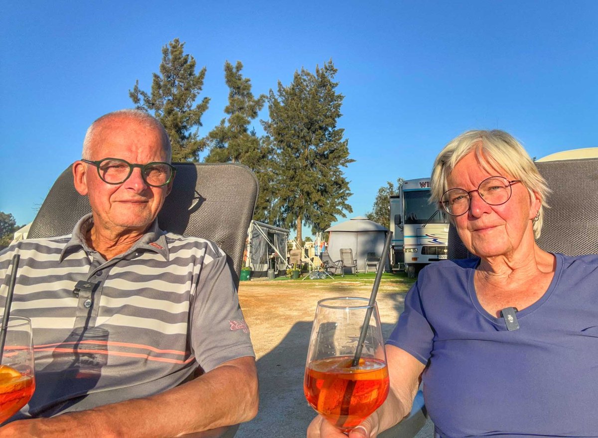 När vi sedan kommer hem efter drygt 8 km promenad slår vi oss ner i kvällssolen med en Aperol och tycker att vi har det riktigt gott!