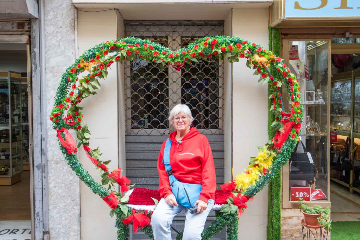 Först tyckte vi staden såg tråkig ut men sedan kom vi in på en del smågator i centrum och då blev det genast trevligare då gatorna var kantade med små serveringar, bagerier och butiker. När vi kom fram till torget blev vi plötsligt lunchsugna och det blev var sin enorm toast med lufttorkad skinka respektive stora rökta ”sardiner”. Där vi satt och mådde gott i solen fick vi verkligen ett annat intryck av staden.