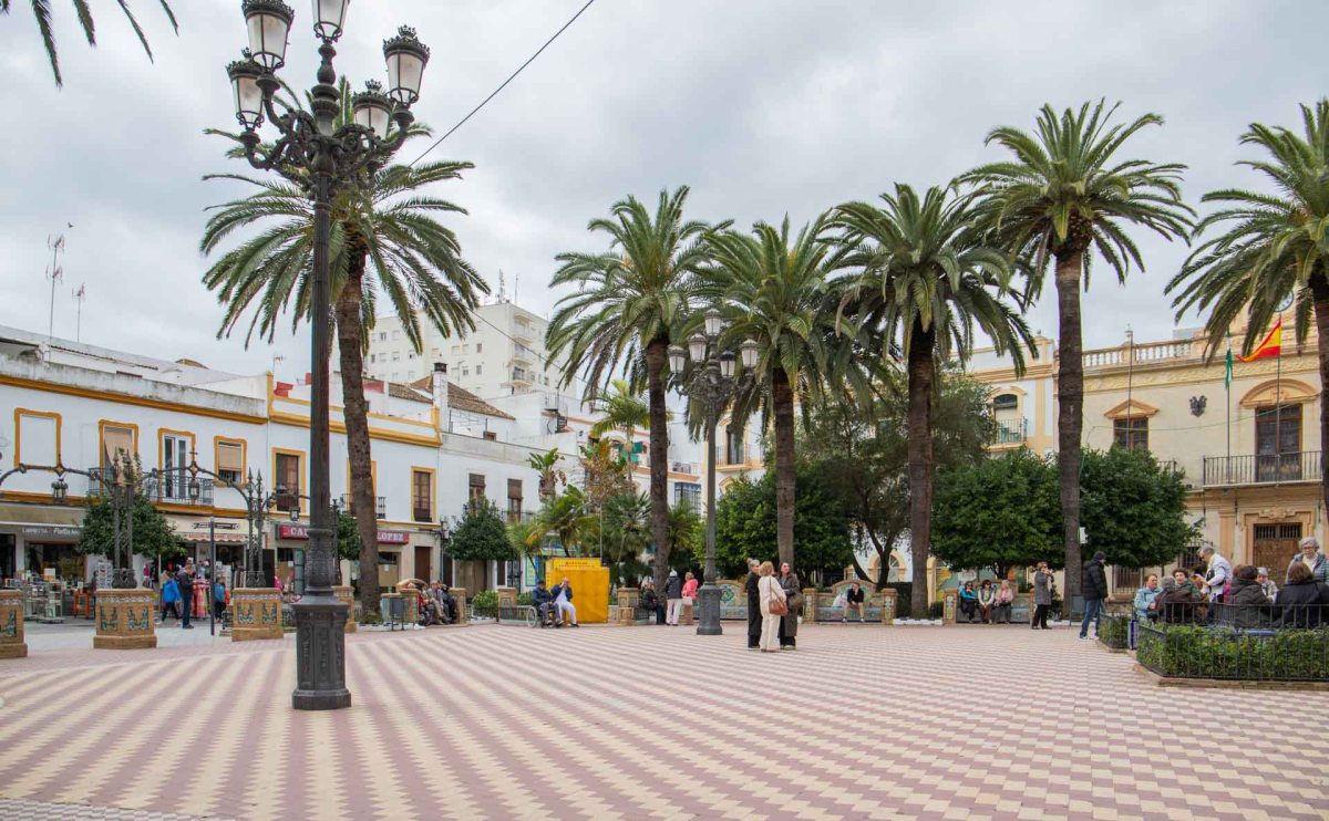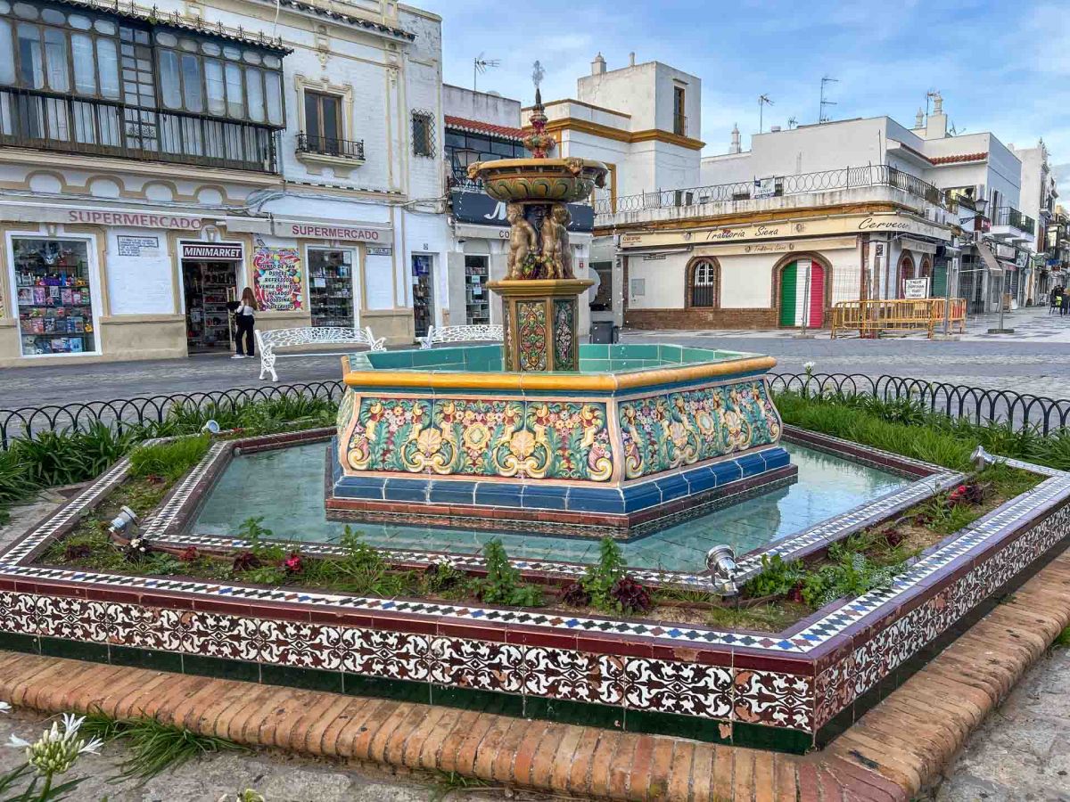 För att komma fram till centrum får vi runda viken med småbåtshamnen. När vi går längs hamnen ser vi den stora bron över Guadiana som vi ska ta om någon dag, då gränsen mellan Spanien och Portugal går mitt i floden.