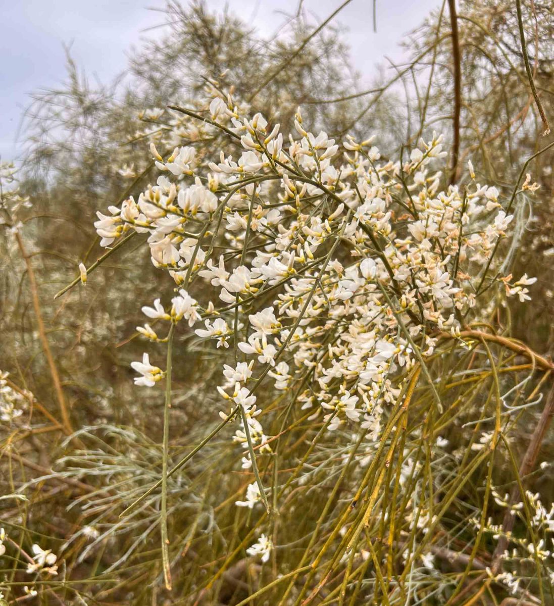 …och där stannade vi först två nätter på ställplatsen i Manta Rota. Den låg bara något hundratal meter från en lång sandstrand och spångar ledde ner genom sanddynerna. Här blommade mängder med vit ginst.