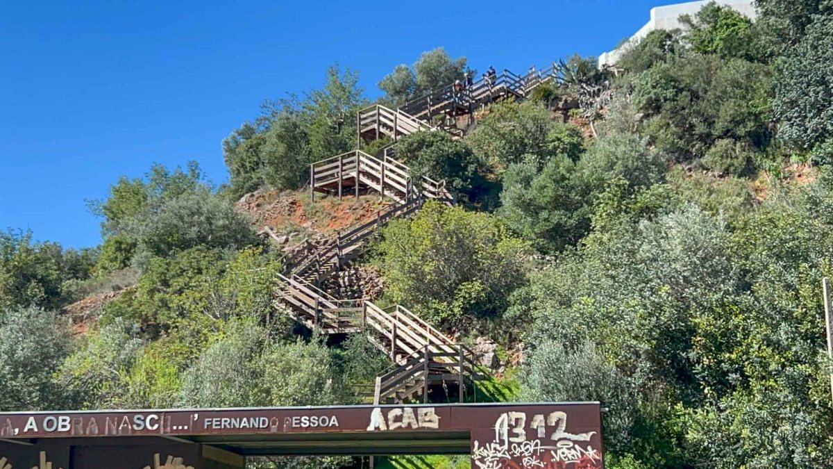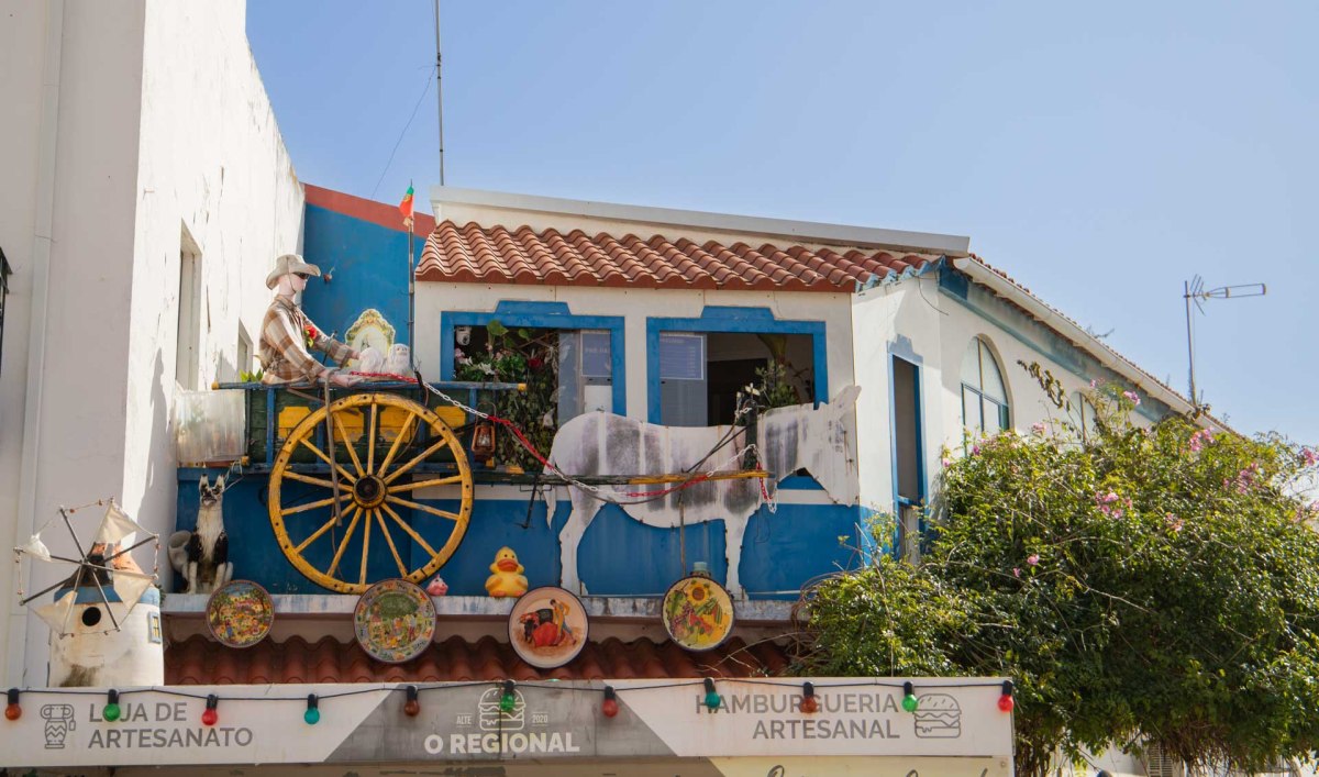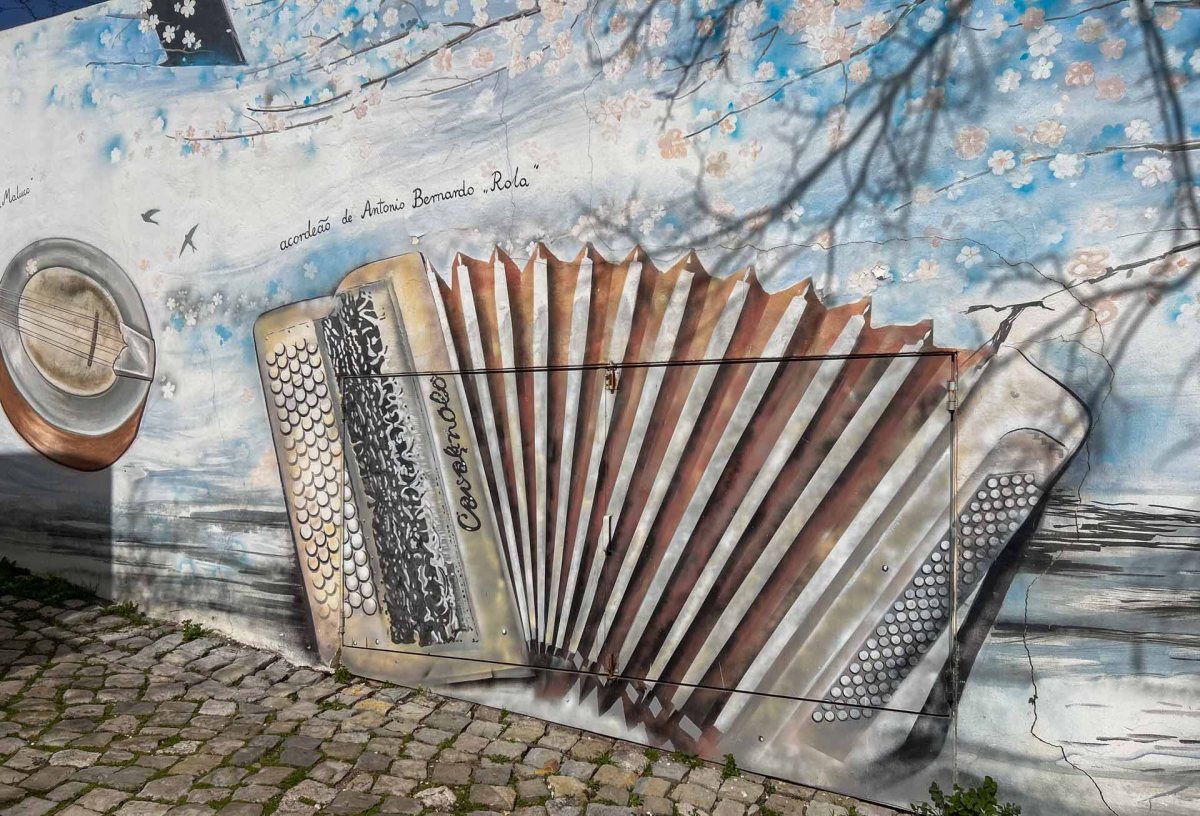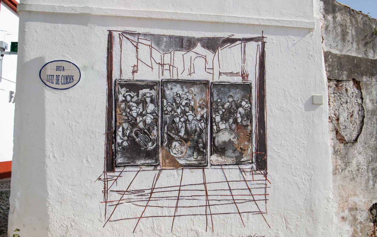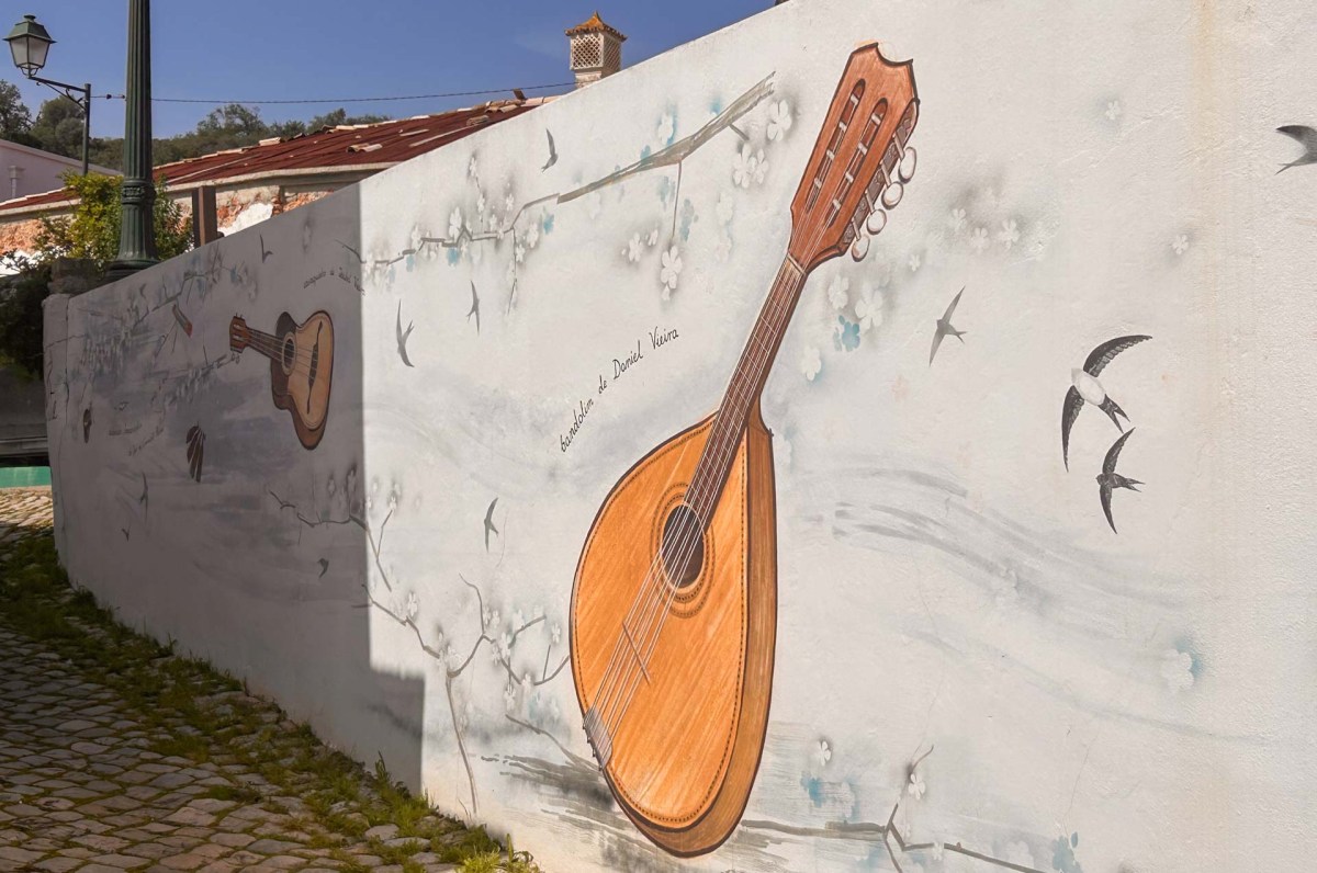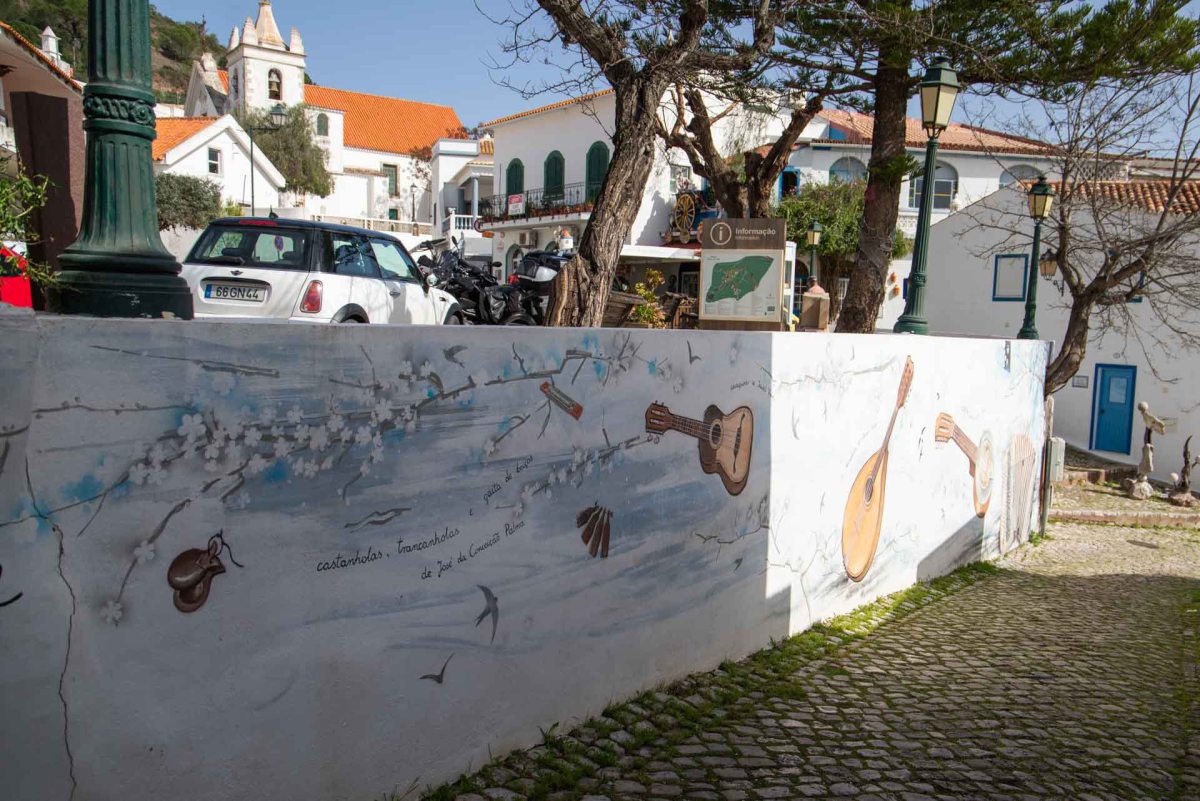Vi strosar runt och tittar in i en keramikbutik med mycket fint hantverk. När vi sedan går genom byn ser vi en enorm målad portugisisk flagga på en bergvägg. Den 60 meter breda flaggan ska ha målats 2018 av lokala ungdomar för att uppmuntra det portugisiska fotbollslaget i VM i Ryssland.