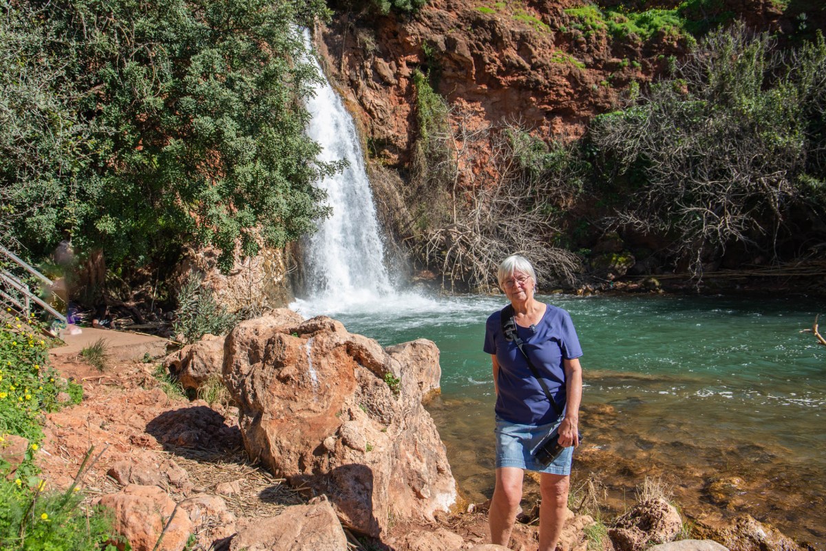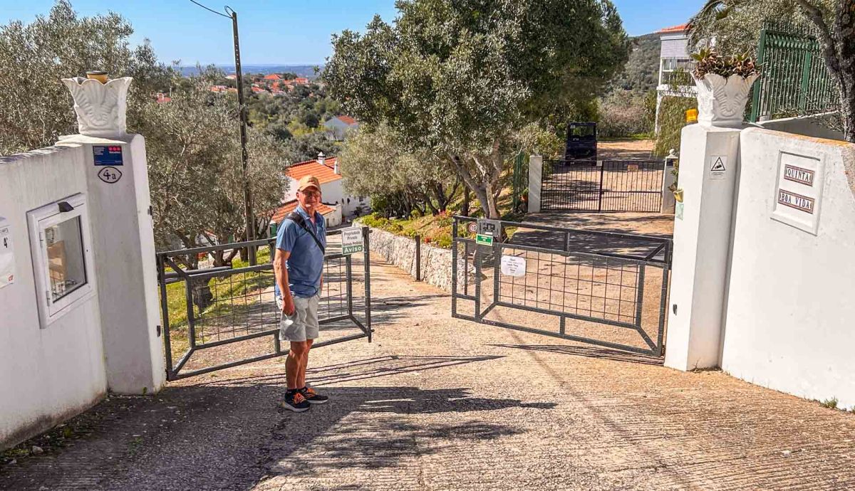 Vi blir varmt mottagna av det tyska värdparet. Att det sedan står backar med apelsiner vi får förse oss av gör inte saken sämre så det blir ett glas färskpressad juice till frukost varje morgon. Nästa dag blir nog resans hittills varmaste dag med ca +25º och en klarblå himmel. Då bestämmer vi oss för att ta en promenad till det lilla vattenfallet, Queda do Vigário, som vi sett fina bilder ifrån när andra varit och besökt det. Vi har knappt två km dit och det blir ett par stopp längs vägen, eftersom utsikten är fantastisk och vi ser långt, långt bort.