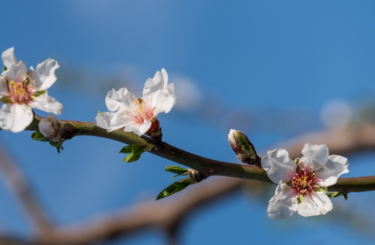 I flera år har jag (B-M) haft en längtan efter att få fotografera mandelblom.Nu när vi åkt här nere har vi fått njuta av blomningen längs vägen, men inte förrän nu kom vi riktigt nära de vackra träden. Här fanns det mandelträd i blom både längs vägen och på ställplatsen så nu gick den drömmen i uppfyllelse. I efterhand har vi fått lära oss att sötmandelns blommor är vita eller ljus rosa medan bittermandelns är mörkare rosa.