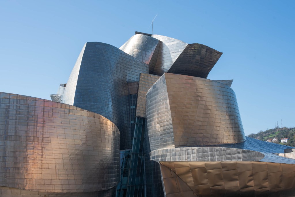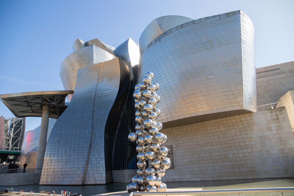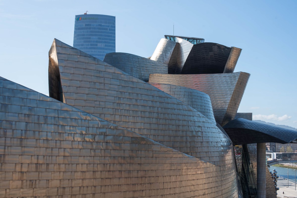 Guggenheimmuséet i Bilbao som invigdes 1997 kan man väl säga är juvelen i Bilbaos kulturella krona. Själva byggnaden är verkligen en upplevelse i sig och arkitekten Frank Gehry tänkte sig att leda tankarna till ett skepp eller en blomma.